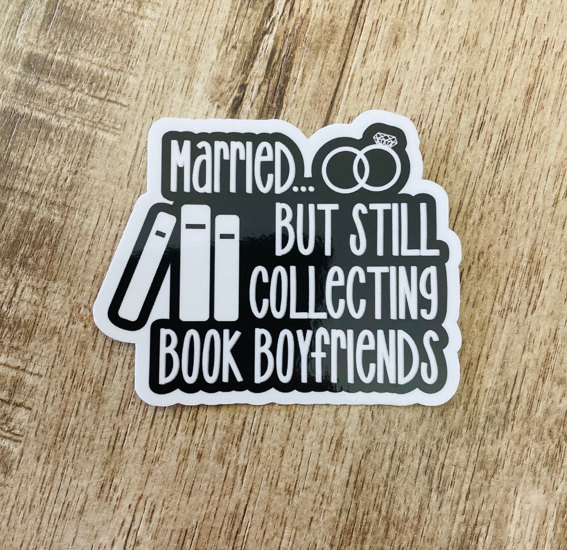 Married but still collecting book boyfriends waterproof sticker black and white